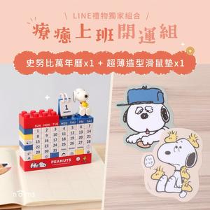 [療癒上班開運組]史努比萬年曆+史努比Slim超薄造型滑鼠墊『LINE禮物獨家組合』