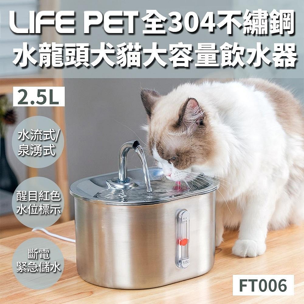 【LIFE Pet】 304不銹鋼兩用餵食碗 3L(附濾芯) |WF140 餵水器 寵物飲水機 貓咪飲水機