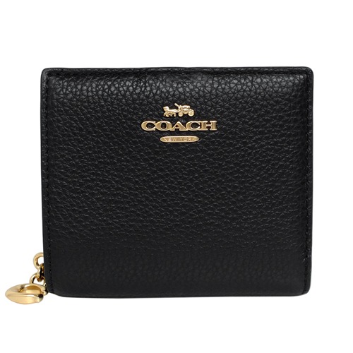 [平輸版] 【COACH】黑色豹紋印花杏黃色荔枝紋金屬馬車LOGO手掛零錢包 真品平輸