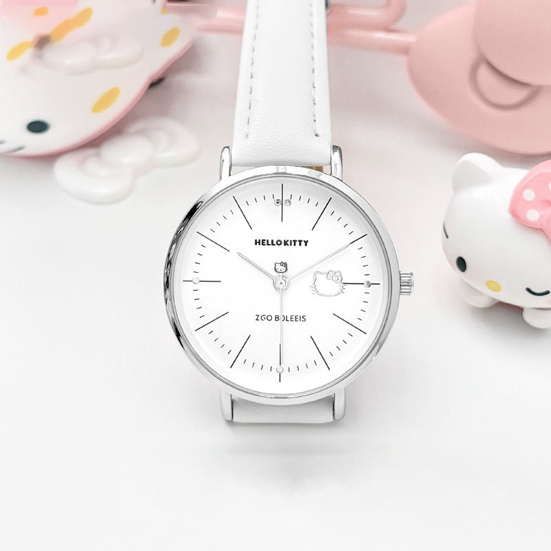 預購中【ZGO正港精品】三麗鷗白色Hello Kitty手錶女學生 時尚簡約 凱蒂貓 簡約 禮物 281