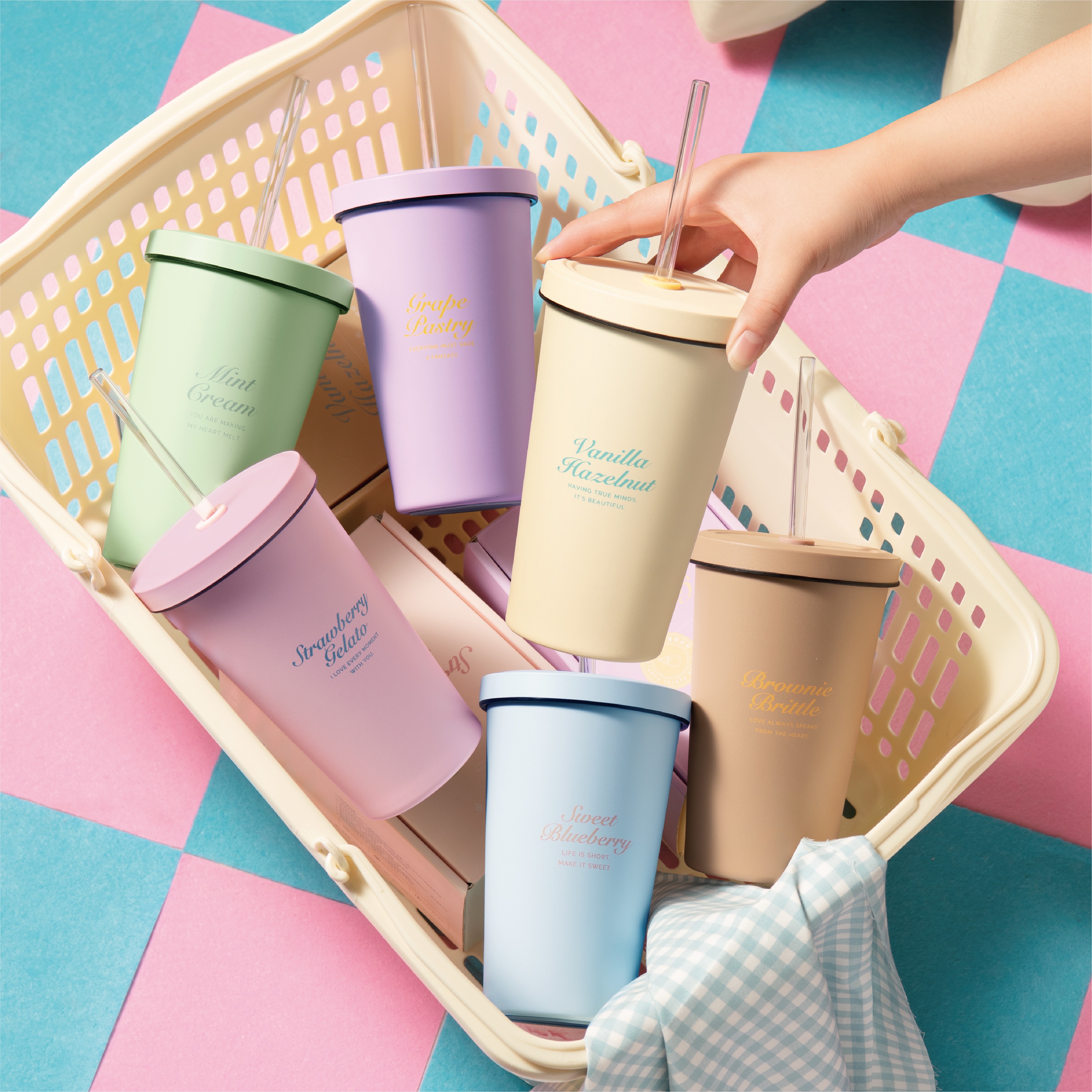 【Oolab良杯製所】情人節首選🌸710ml小時光吸管杯+晨曦格紋提袋+韓系蝴蝶結吊飾|🚗快速出貨