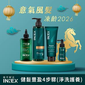 髮你凍齡一輩子【美吾髮】INNEX植萃賦活│健髮豐盈4件組〔強健淨化液200ml+強健養護洗髮精510ml+護髮膜180g+強健養髮精華45ml〕(胜肽養髮/頭皮養護/健髮/養髮/頭皮照護)