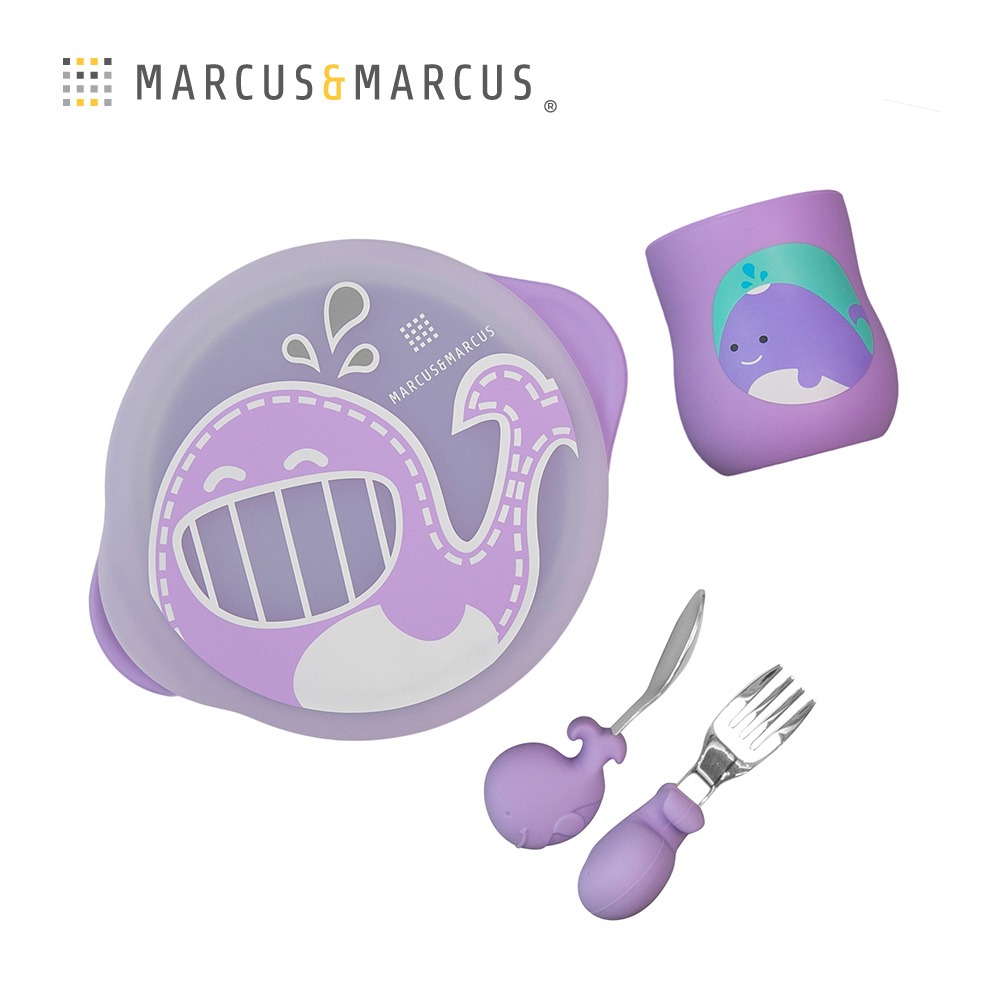 【MARCUS&MARCUS】幼童握握學習禮盒立體圍兜組(紫鯨魚)