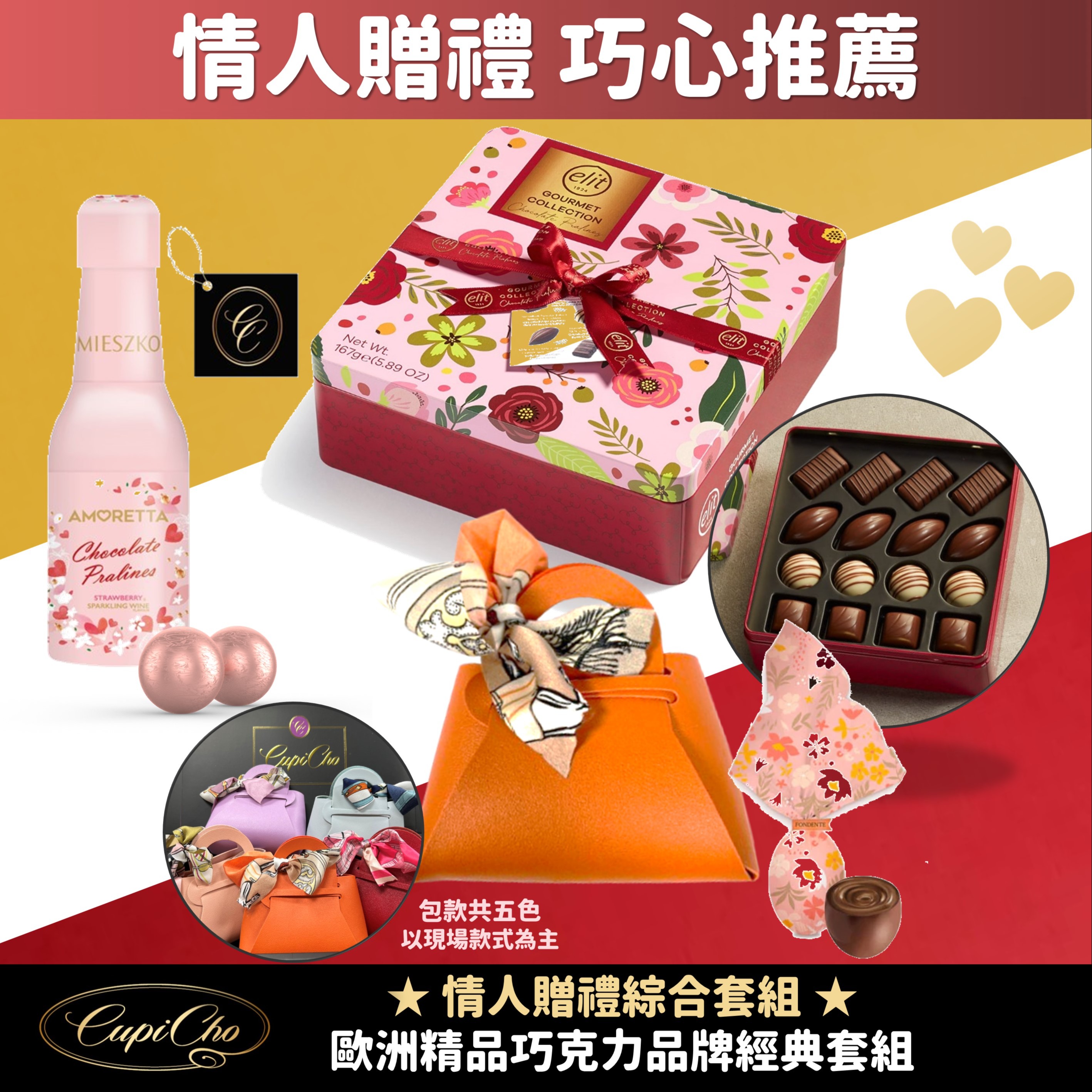 ❤️情人節甜蜜企劃|獻給最重要的人❤️【CupiCho 丘彼巧】土耳其Elit 豪華綜合夾心巧克力禮盒-金紅 204g