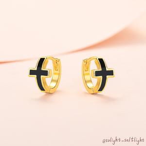 【SoLight鹽青】個性黑色十字架耳環 SL206|簡約款 經典設計 福音飾品|帶來低調中的神秘感,與眾不同的造型彰顯了個性與態度,反映了追求個性化和獨特時尚感的現代精神,是一款時尚達人的首選飾品