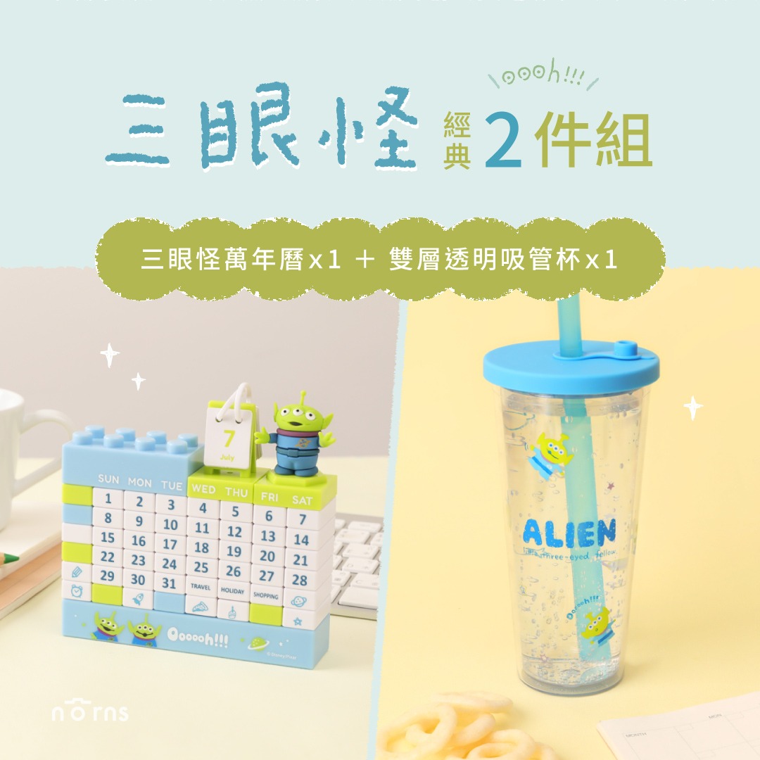 【Norns】[迪士尼三眼怪✿經典二件組]三眼怪萬年曆X1+雙層透明吸管杯X1『LINE禮物獨家組合』