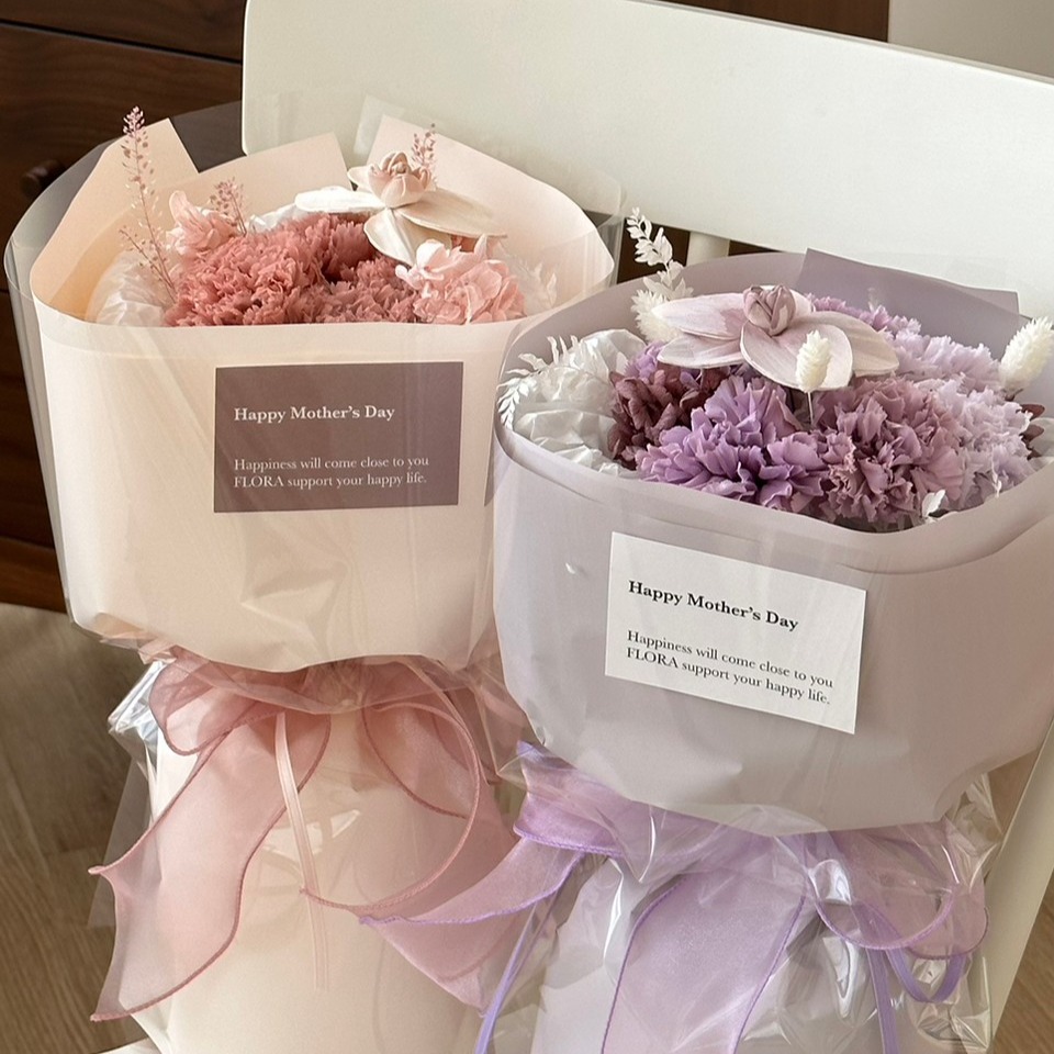 母親節花束【Flora Flower】永生康乃馨泡泡花束 - 抱抱小棉襖 (2款) 永生花 乾燥花 生日 母親節 禮物