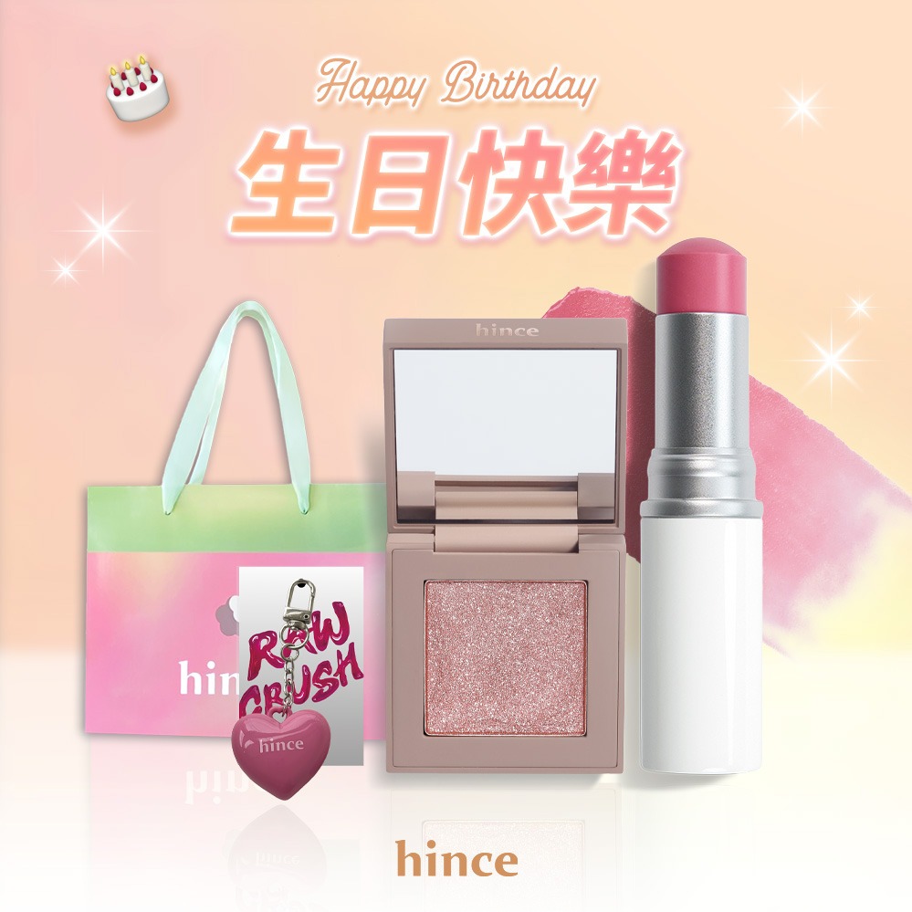 🚚快速出貨【hince】生日快樂!冰透唇釉+液態腮紅+Dewy Ball化妝包+生日貝殼小卡+Dewy Ball提袋(生日禮物)