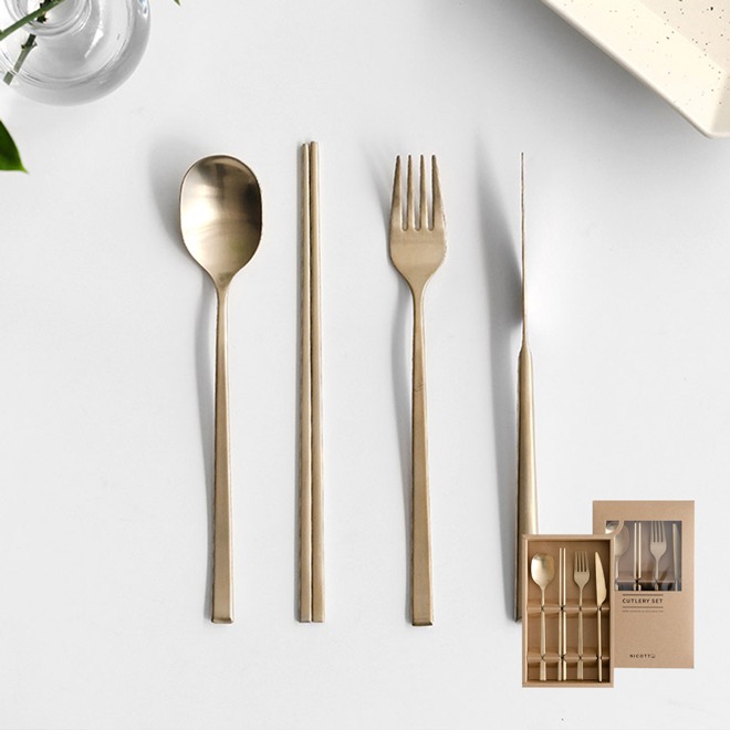 【MH家居】韓國304不銹鋼甜點餐具組-香檳金