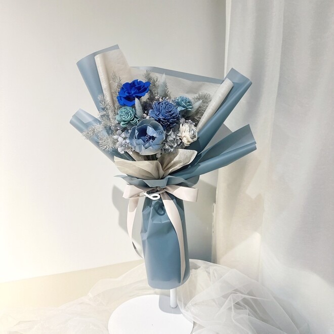 【閒暇人花藝設計】有太陽的日子永生玫瑰花束 藍天 L / 畢業花束 情人節禮物 生日禮物 母親節禮物 結婚禮物 開幕賀禮 喬遷禮物 升遷賀禮