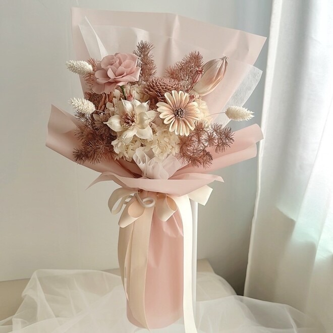 情人節花束【Flora Flower】永生花韓系花束-奶油蜜橘