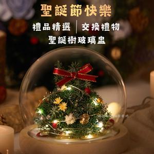 【Blooming.sein 林粼花藝設計】聖誕限定🎄永生繡球聖誕樹罩鐘 聖誕裝飾 永生花鐘 交換禮物 節日慶祝