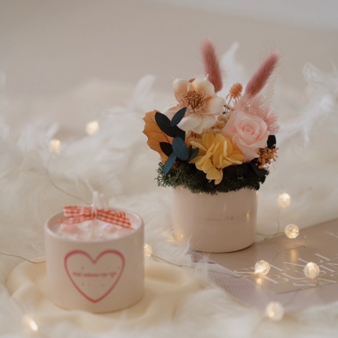 【閒暇人花藝設計】柔光桃花 永生盆花 L / 開幕花禮 祝賀禮物 新年賀禮 新年盆花