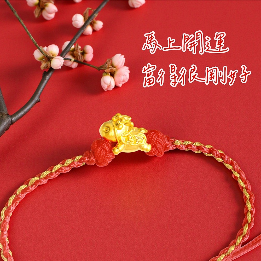 【快速出貨】【TLH】 黃金墜編織手鍊 純金999 花迎新歲 馬上開運 約重0.04錢±0.01 隨機贈送馬年御守 (馬年 過年)
