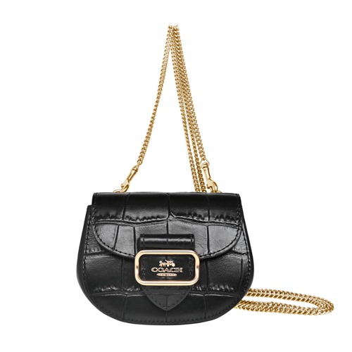 [平輸版] 【COACH】黑檀木C LOGO PVC拼接荔枝紋皮革斜背水桶包 真品平輸