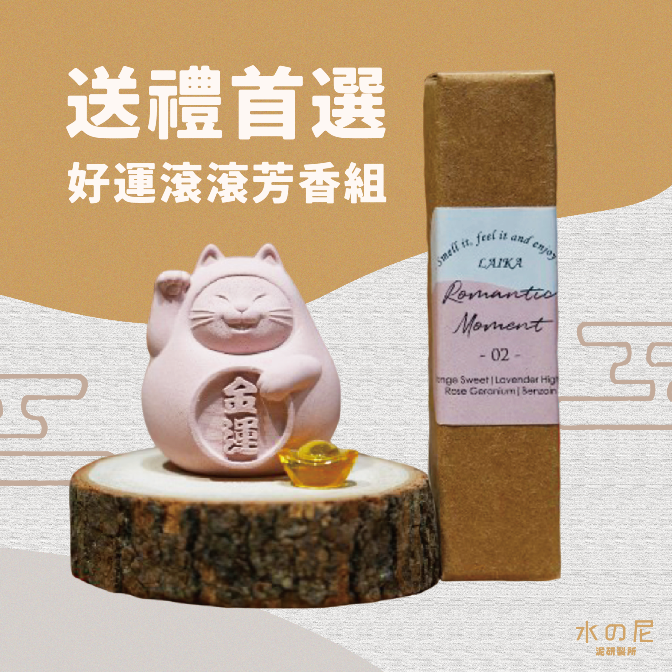 胖胖招財招福貓 (小)繽紛好運精油組(收禮者可任選)