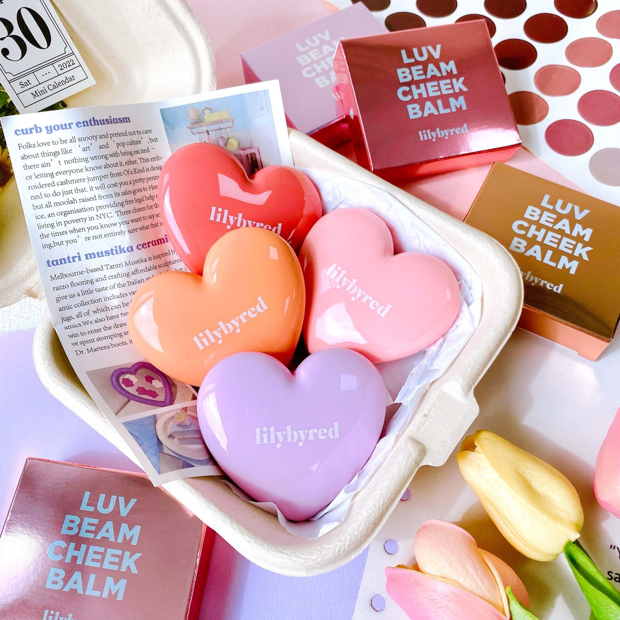 情人禮物 💓【lilybyred】愛心頰彩 4 件組|含甜美心型腮紅膏+心型打亮+雙入愛心手指粉撲