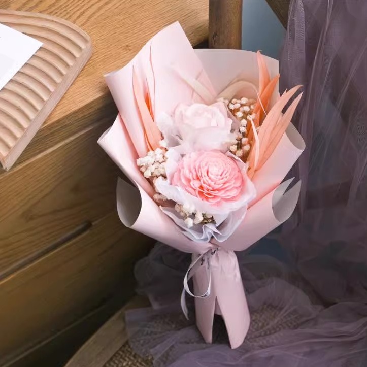 【花花市集】花花市集 小香風仿真玫瑰花束 表白捧花 情人節香皂花束 - 粉雪山花束