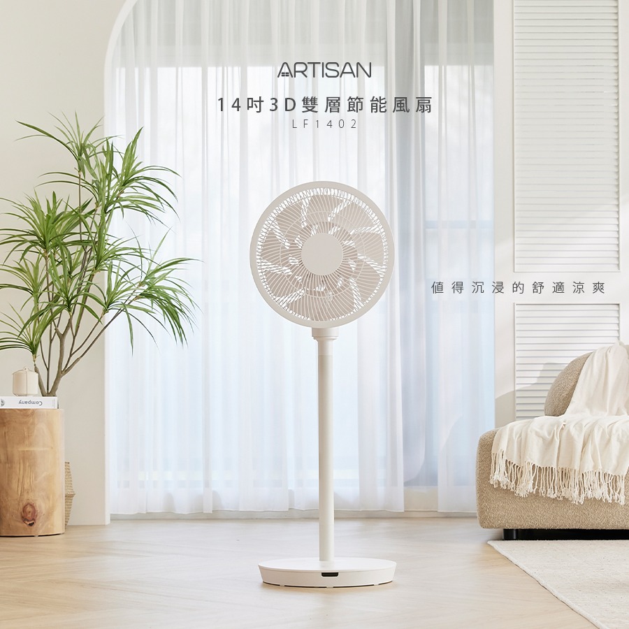 前所未有 全域流暢【ARTISAN】5D全域DC循環扇 - 舒棉白 LF3002 入厝禮 一台抵三台 冷暖氣輔助 空氣對流 直立式循環扇 自動擺頭 遙控定時