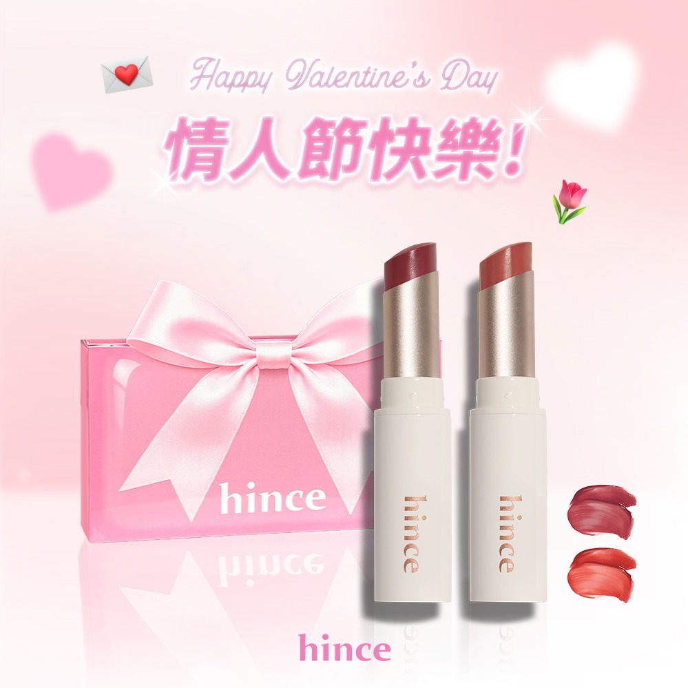 快速出貨【hince】情人節快樂!柔光煥彩單色眼影+清新水感冰透唇釉+獨家禮盒(情人節禮物)
