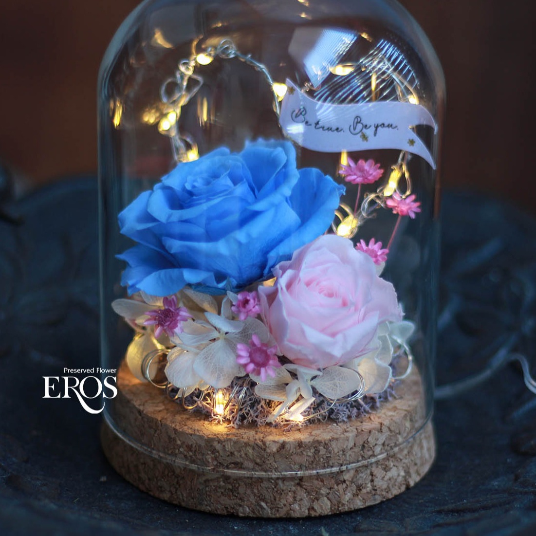 [快速出貨] 【粘粘&Hope花藝坊】永生花燈飾花盅(藍色)|情人節快樂 生日快樂 紀念日 告白禮物 開幕 喬遷 畢業快樂 玻璃盅 永生花 高升禮物