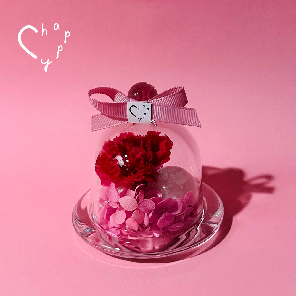 好運不斷💖【C happy】庭園玫瑰永生花玻璃盆禮+ 3顆原礦水晶