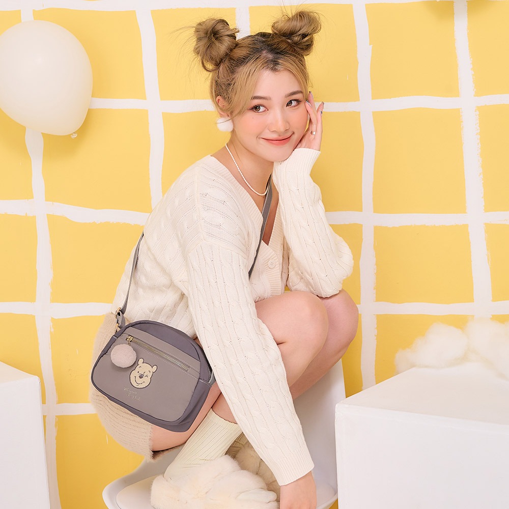 【DISNEY】小熊維尼-兩用側背包-米灰色