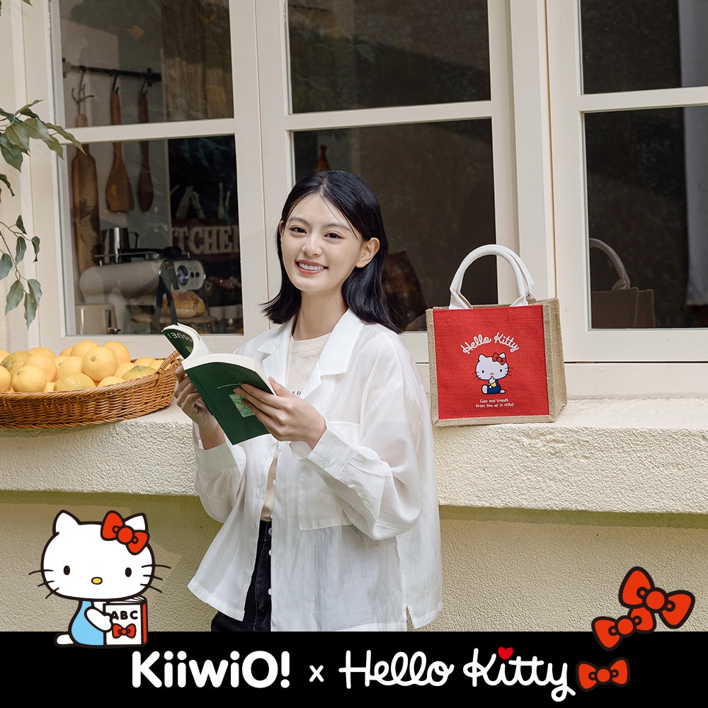 就是喜歡你【Kiiwi O!】Hello Kitty x Kiiwi O! 聯名款.萌萌大臉系列雙面棉麻手提袋 (共5款可選) 三麗鷗 出遊購物 輕巧便利 實用好提 簡約提袋 女生禮物