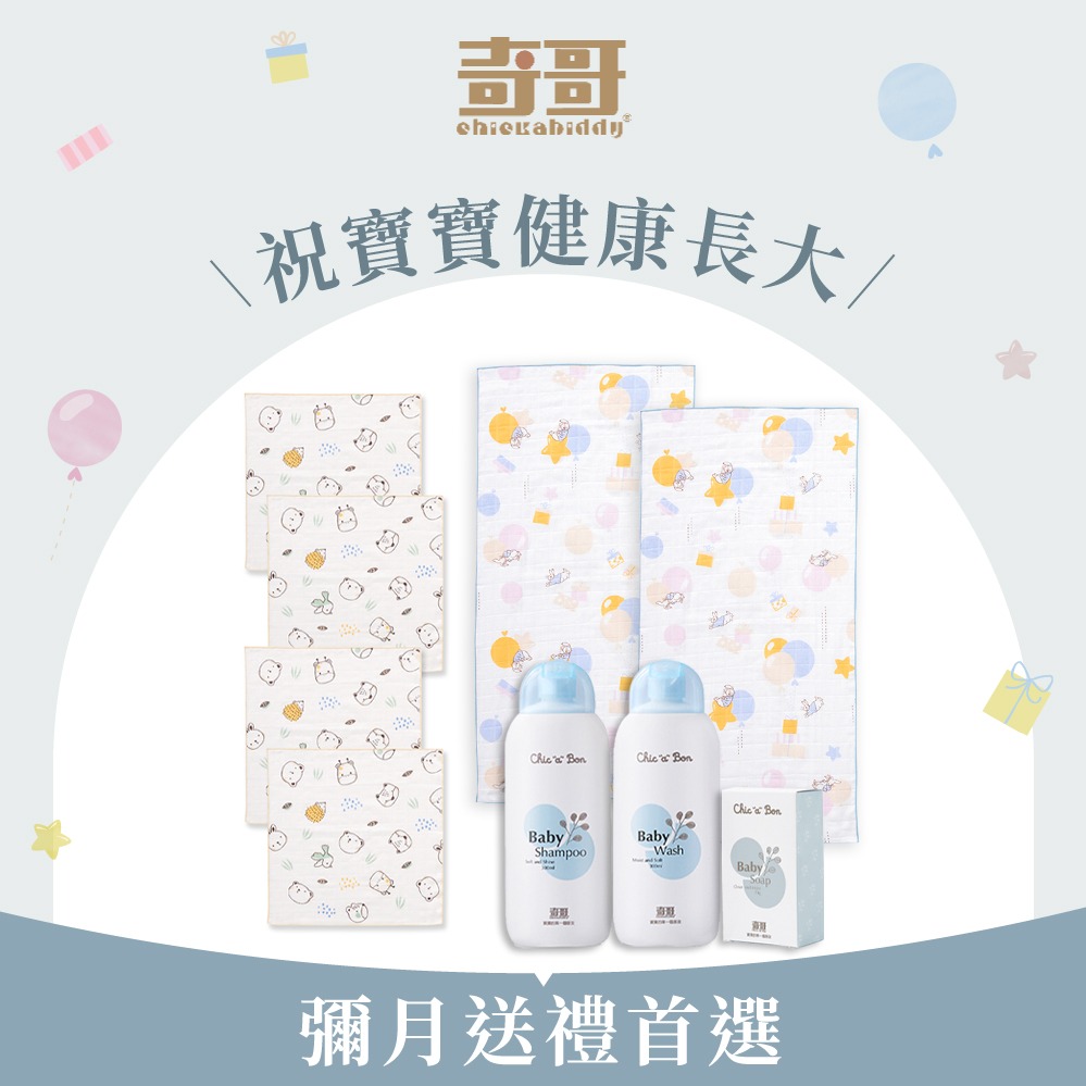 【奇哥】Chic a Bon 洗沐潔膚禮盒(香皂4入、洗髮精1入、沐浴露1入)|寶寶新生兒禮、滿月禮、彌月禮、馬年吉祥、新年快樂