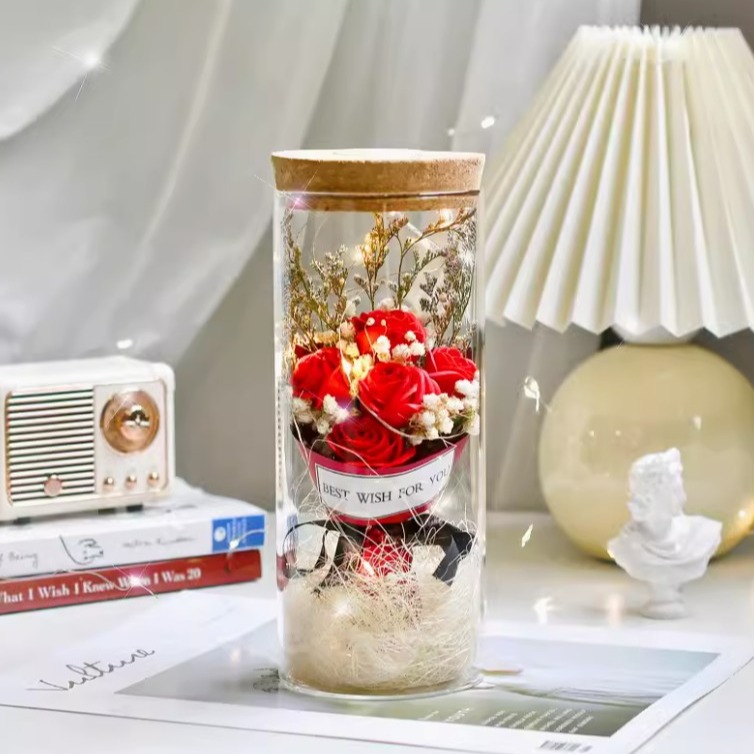 [粘粘&Hope花藝坊] 永生花燈飾花盅|開運 結婚禮物 情人節快樂 生日快樂 開業 畢業快樂 永生花 玻璃盅 新年快樂 喬遷 高升 禮物