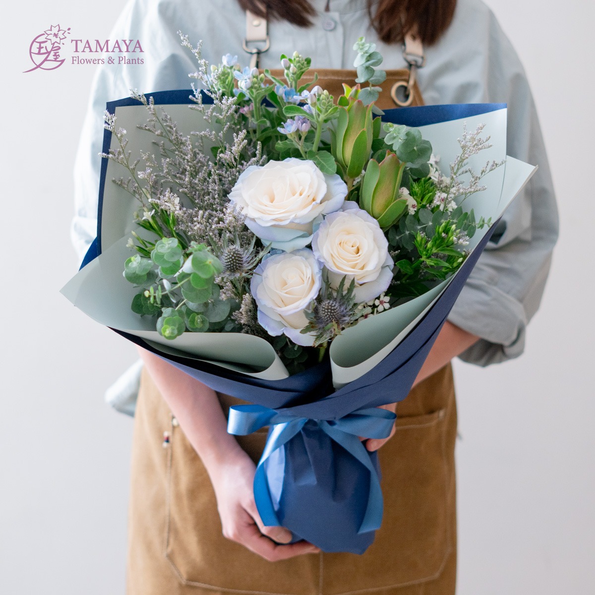 陪你追尋夢想【玉屋 TAMAYA】群青恋玫瑰花束|18朵 代印卡片 情人專屬花束 情人節快樂 情人節花禮 情人獻禮 傳遞情意 永恆的愛 幸福浪漫 520