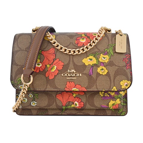 [平輸版] 【COACH】仿刺繡櫻桃皮雕亮粉燙印黑色皮革鍊帶頸掛斜背方型卡夾零錢小廢包 真品平輸
