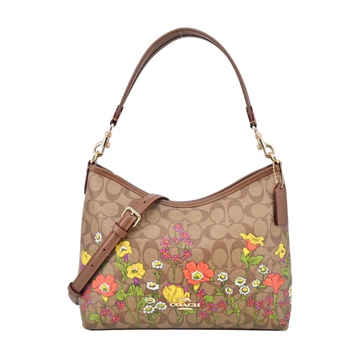 [平輸版] 【MICHAEL KORS】JET SET新版交叉滿版PVC斜背貝殼包-咖真品平輸