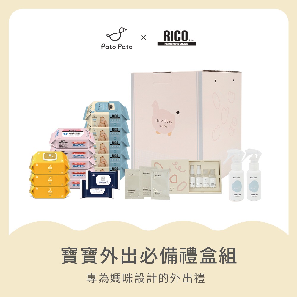 【Pato Pato】X 韓國 Rico Baby新生兒外出旅行禮盒組(濕紙巾+旅行組) /新生賀禮 /彌月禮/新生禮/滿月禮/生日禮物/媽媽禮/寶寶禮