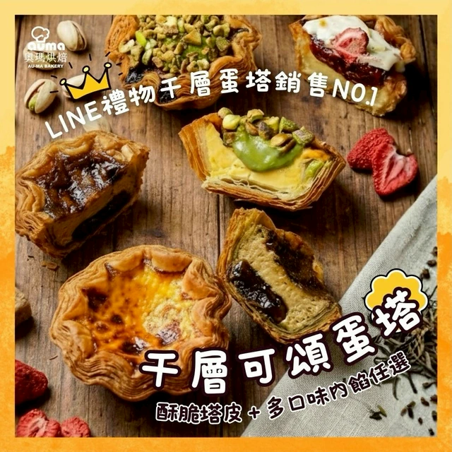 獨家盲盒【奧瑪烘焙】千層蛋塔多口味4入組+限量驚喜 LINE禮物獨家 情人節快樂 水瓶座生日快樂 送禮首選禮盒