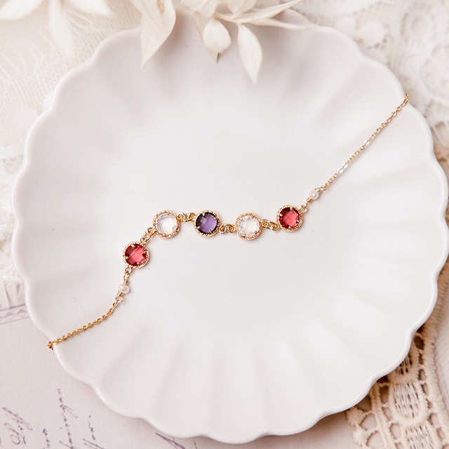 【Ficelle輕珠寶】守護花 • 水瓶座 • 金魚草| 白玉 紅瑪瑙 珍珠 紫水晶 黃水晶 粉碧璽 太陽石 星座飾品 黃銅鍍18K金 三層手鍊