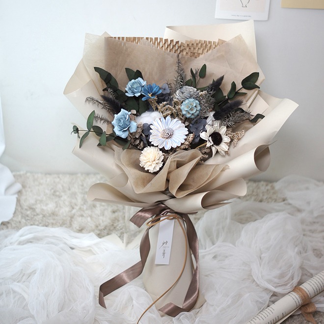 【Blooming.sein 林粼花藝設計】開學送禮 乾燥花束 藍綠色系 生日 情人節 畢業 節日禮物