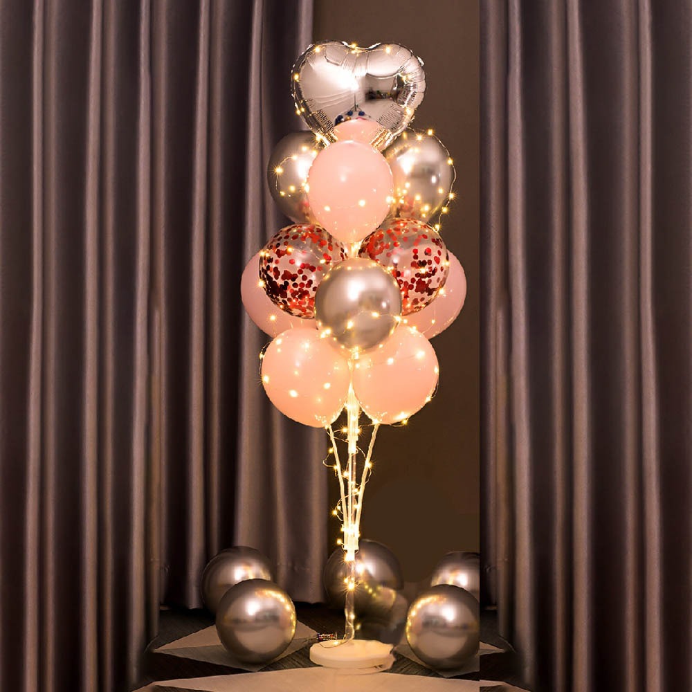 【Giftpro 氣球禮物】 波波球桌飄 LED套組 波波氣球 告白氣球 羽毛氣球 泡泡球 情人節氣球 生日 布置 結婚 波波球 桌飄 - 粉色羽毛