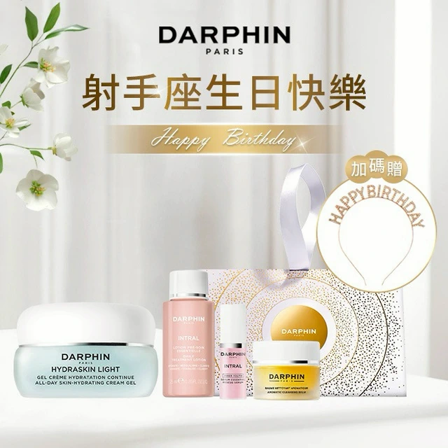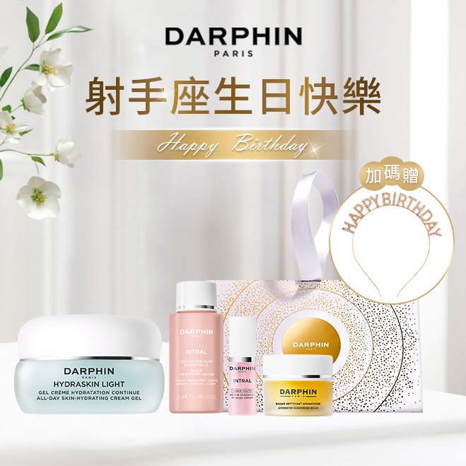 射手座生日快樂💓送女友生日禮物 送禮 【DARPHIN朵法】金緻再生奢光精華水30ml+修護乳霜5ml+金緻再生奢光露5ml+金緻三角提袋禮盒+Happy Birthday水鑽髮箍