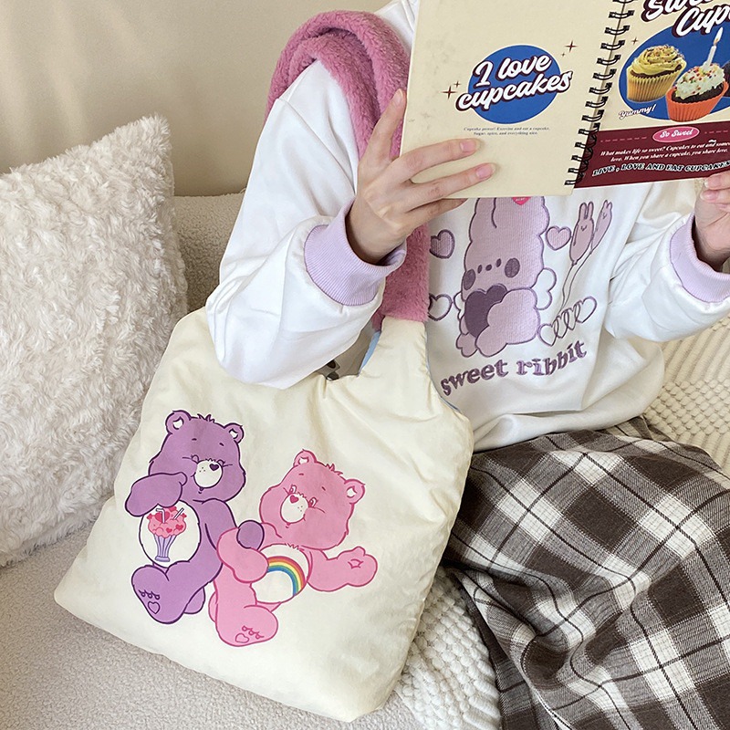 限量發售【遊戲家】Care Bears五色 彩虹熊 愛心熊 毛絨 羊羔毛 羊羔絨 化妝包 手拿包 筆袋 收納包 (紫色)F