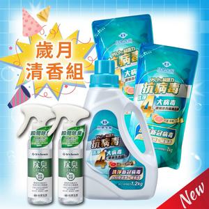 《歲月淨好》抗病毒濃縮洗衣精(1瓶+2包) + 除臭清新噴霧(茶香/無香)x2入| 台塑生醫|牡羊座|生日禮物|跨年|新年禮物|禮物|洗衣|大掃除