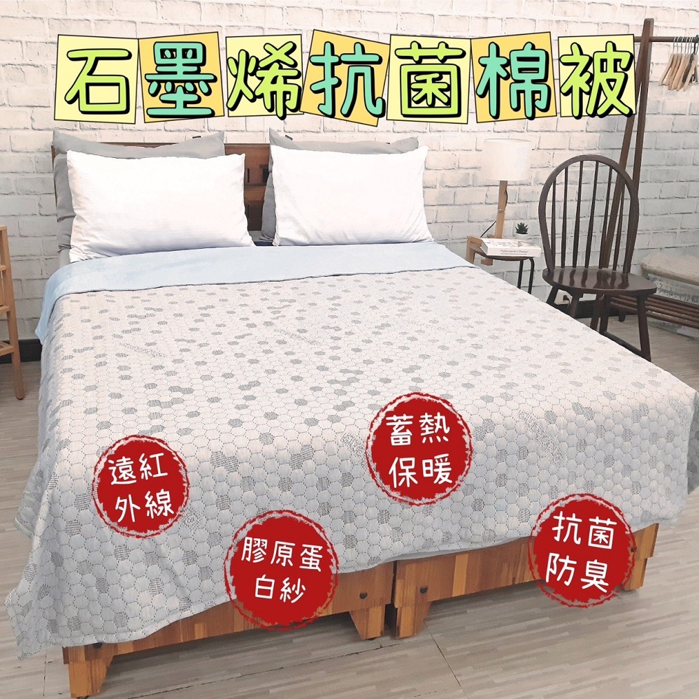 【睡眠黑金科技】石墨烯功能被四季被 蓄熱保暖親膚不刺癢 觸感柔軟蓬鬆 抗靜電 抑菌抗菌棉被 防螨防塵螨除臭 遠紅外線加熱升溫發熱 天秤座生日禮物 入厝禮物