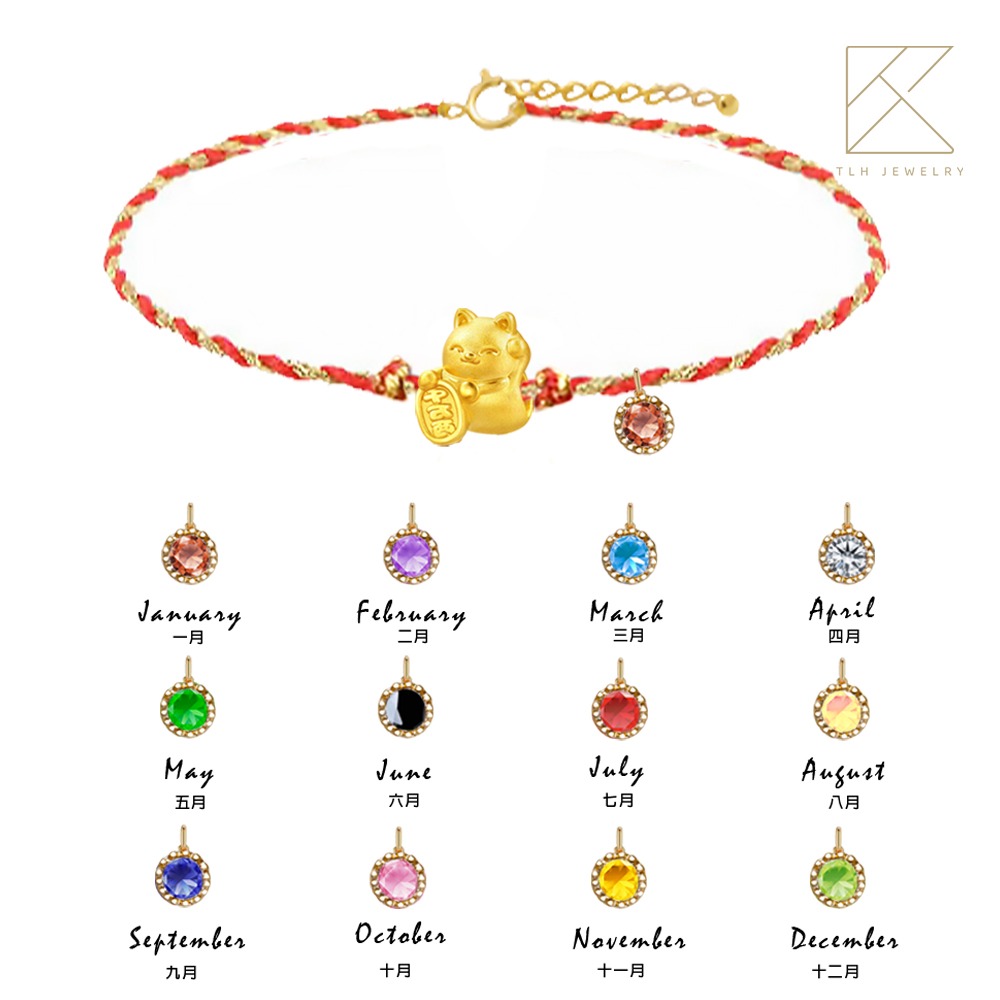 【TLH】黃金墜手鍊 純金999 多選 日系水鑽 約重0.03錢±0.01(生日 情人節 希望 幸運 )