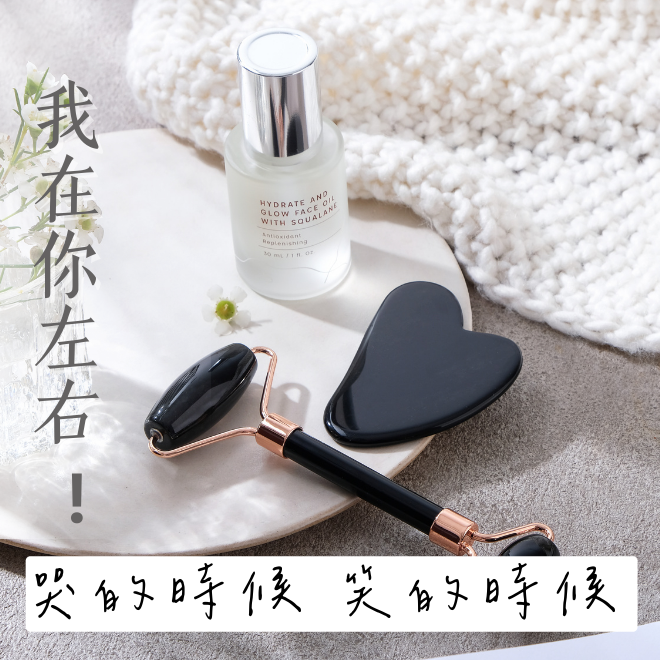 [快速出貨]【愛蕊友肌】情人節快樂💕|粉晶滾輪美顏娘娘棒刮痧板禮盒組 + 角鯊透亮精萃油-臉部美容按摩