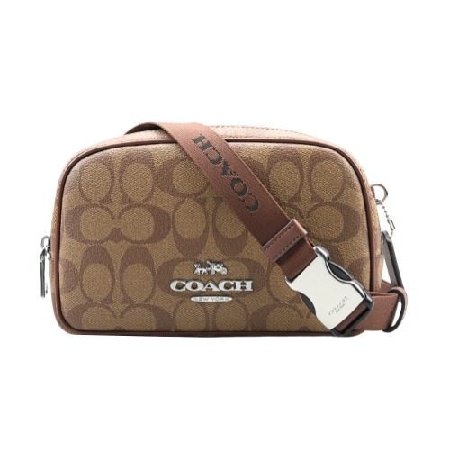 [平輸版] 【COACH】焦糖棕C LOGO麂皮後拉鍊袋中款水餃斜背男包 真品平輸