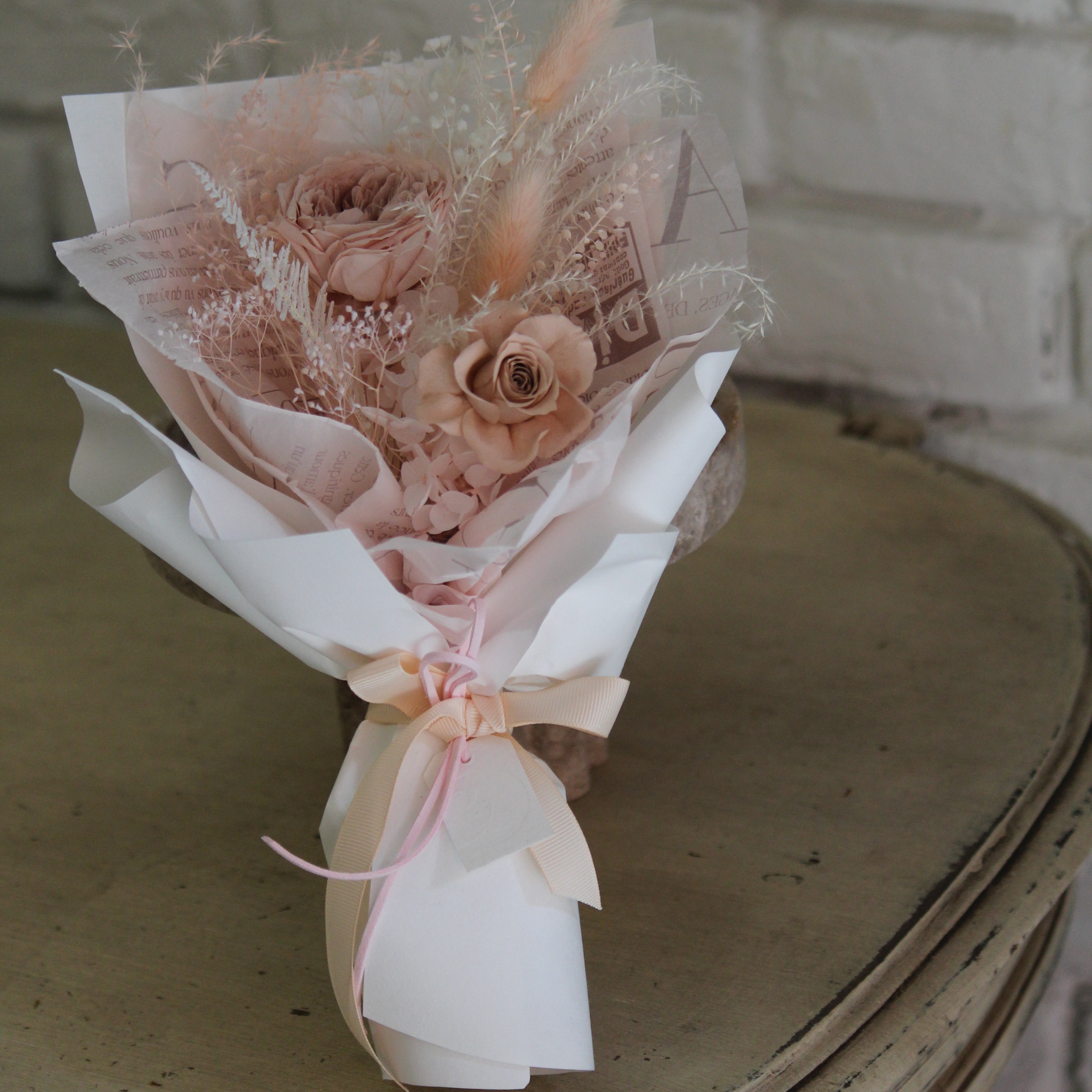 【& Grace Flower永生花禮花藝店】奶茶粉永生玫瑰雛菊花束 永生花 送禮 質感 氣氛 節日送禮 禮物