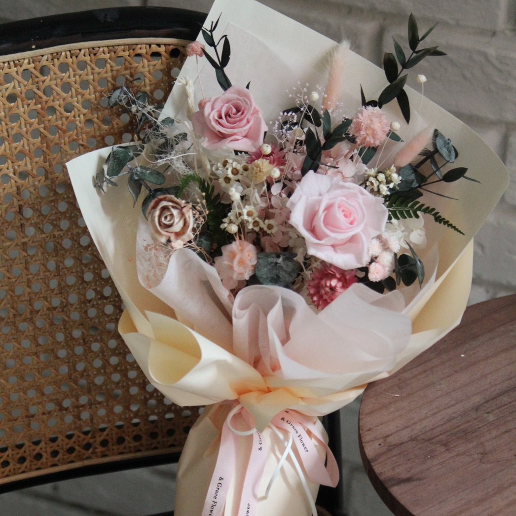 【& Grace Flower永生花禮花藝店】粉色永生花束 永生花 送禮 質感 氣氛 節日送禮 禮物