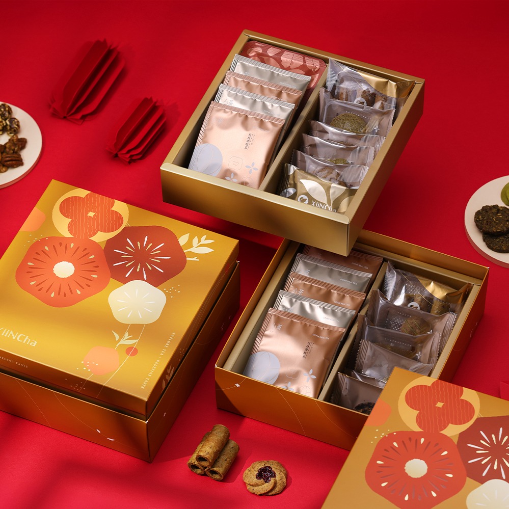 【心茶 XiiNCha】真心祝福 🧧 澄映燙金禮盒 茶點 12入 | 茶點X茶包 12入 | 生日禮/新年禮盒/節慶送禮