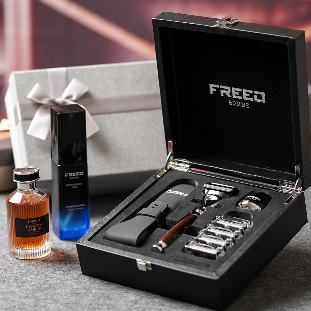 [快速出貨]【FREED】五刀式刮鬍刀尊爵禮盒四件組 送禮自選 客製化刻字 生日禮物 送禮推薦 男生禮物 水瓶座 雙魚座 禮物獨家 新品上市 情人節禮物