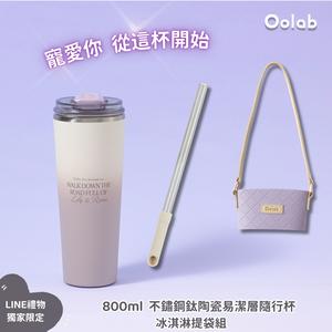 【Oolab良杯製所】800ml不鏽鋼鈦陶瓷易潔層隨行杯+跳跳吸管(粗)+冰淇淋杯提袋 🚗快速出貨